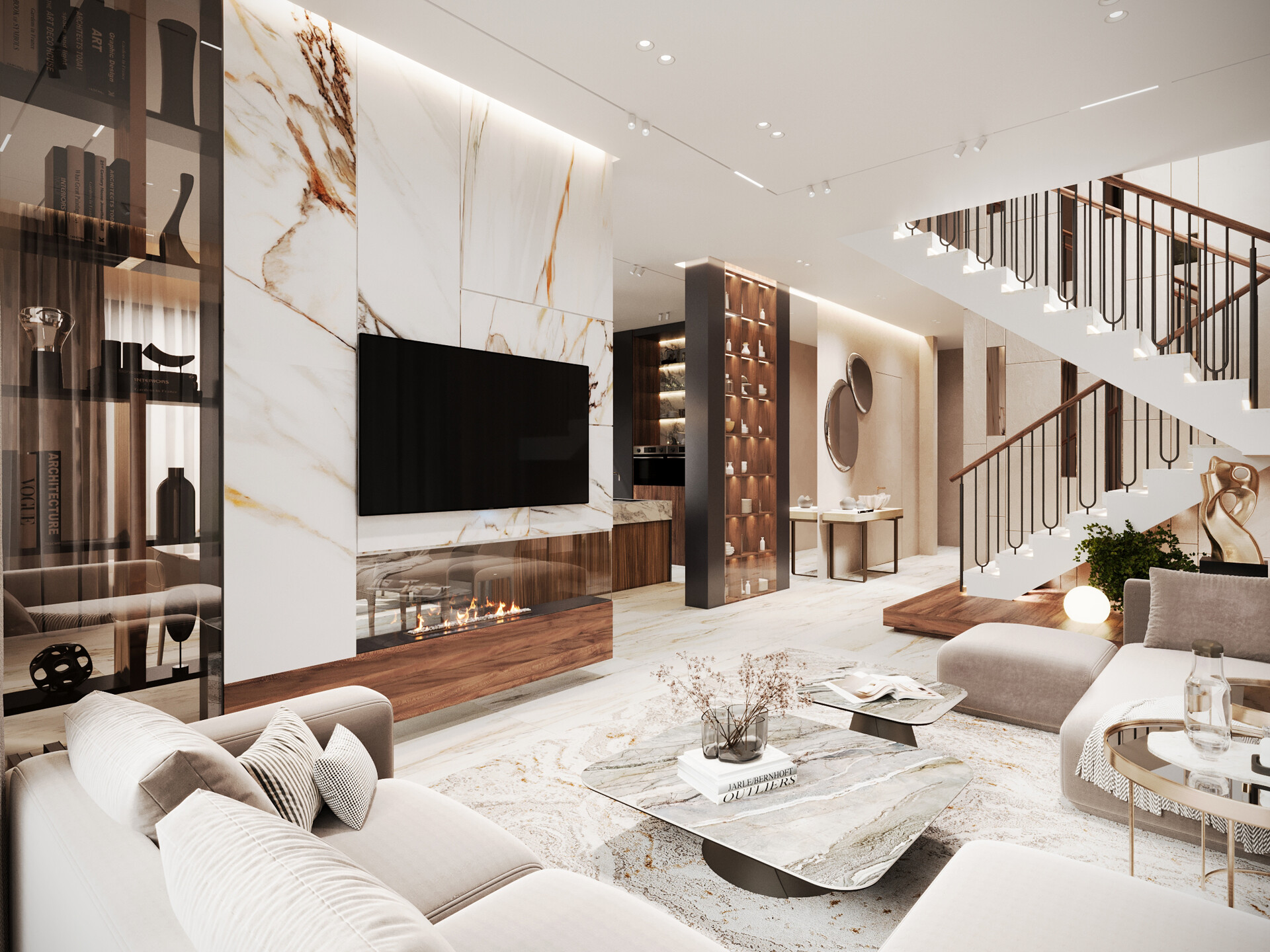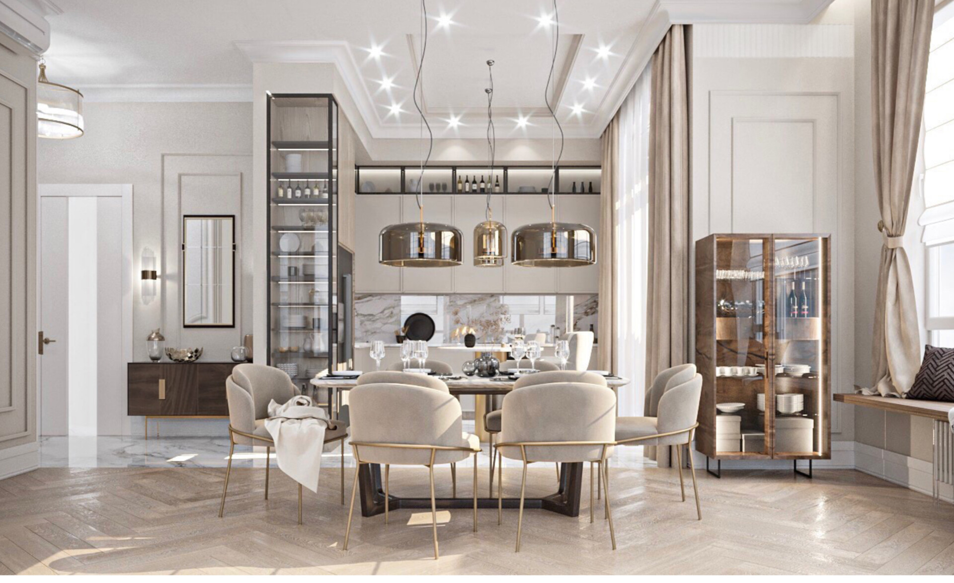Главной нашей задумкой в данном пространстве было создать гармоничное сочетание мягкой неоклассики и фактуры натурального камня
